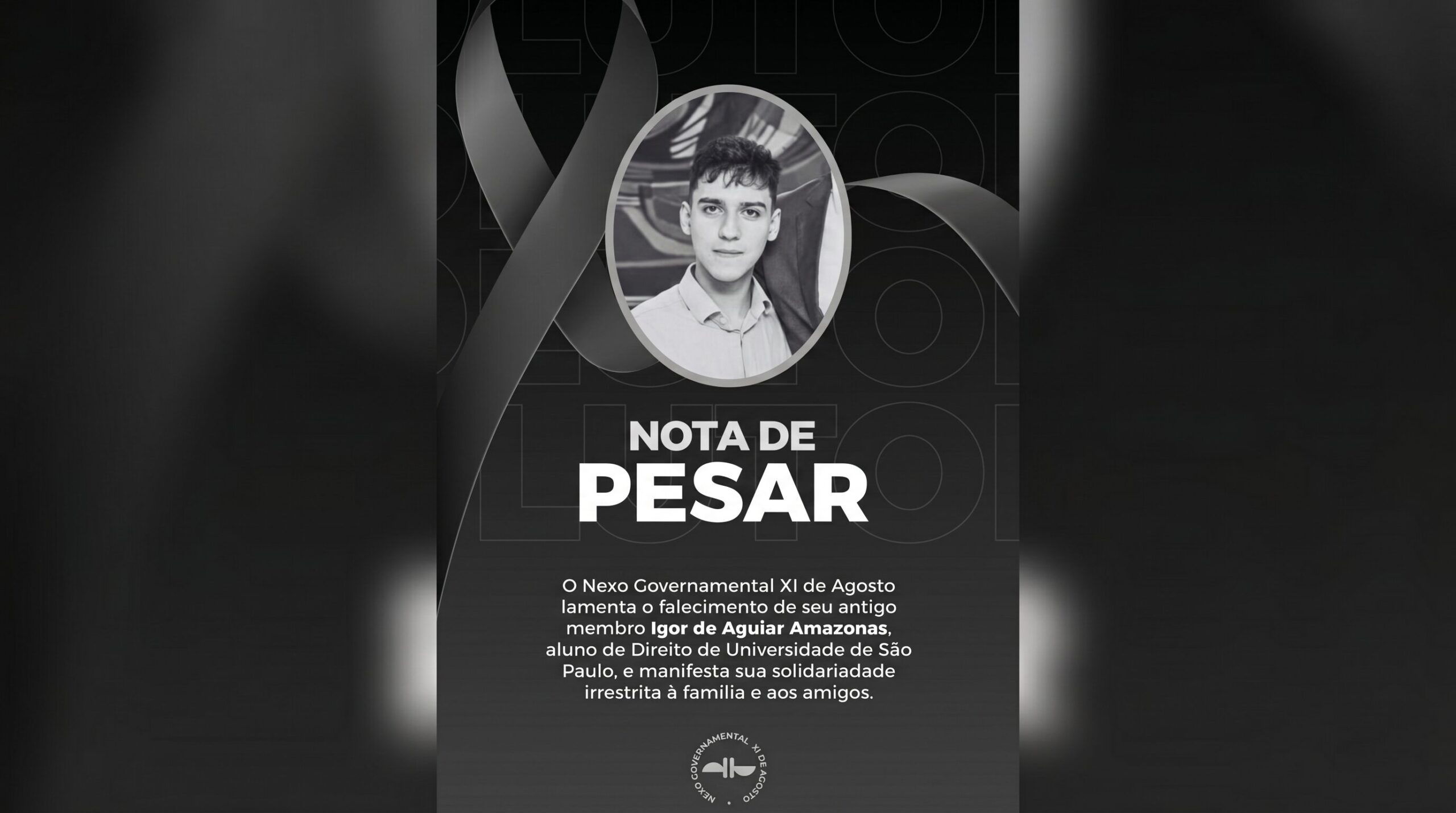 O Nexo Governamental XI de Agosto, grupo de extensão da Faculdade de Direito da USP do qual Igor era membro, publicou uma nota de pesar afirmando que lamenta “o falecimento de seu antigo membro Igor de Aguiar Amazonas, aluno de Direito da Universidade de São Paulo”, além de manifestar solidariedade à família e aos amigos.