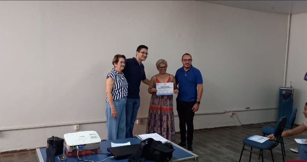 Participando da entrega de certificado para os alunos qualificados pelo curso,