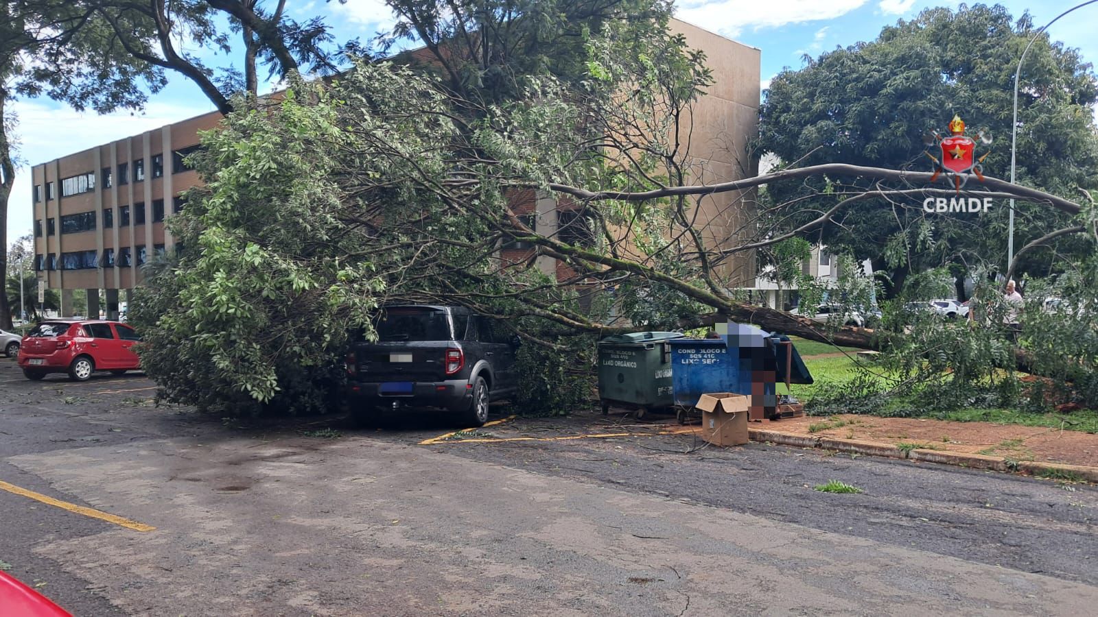 O Corpo de Bombeiros Militar do Distrito Federal (CBMDF) foi acionado na tarde deste sábado (31) para atender ao menos 15 ocorrências relacionadas à queda de árvores e de um poste de iluminação pública em diferentes regiões do Distrito Federal.