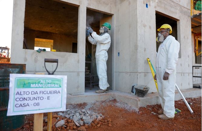 “Estamos mobilizados tanto com equipamentos quanto com capital humano. Nós já iniciamos a parte de infraestrutura e temos três condomínios em andamento. Já temos muitos serviços executados em alguns trechos da primeira etapa e também começamos a fundação e a estrutura das habitações”, explica Radames.