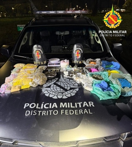 Durante patrulhamento na região da QN 317, equipes da Rotam identificaram um veículo com dois ocupantes em atitude considerada suspeita. Após a abordagem, os policiais realizaram buscas no automóvel e encontraram uma grande quantidade de entorpecentes.