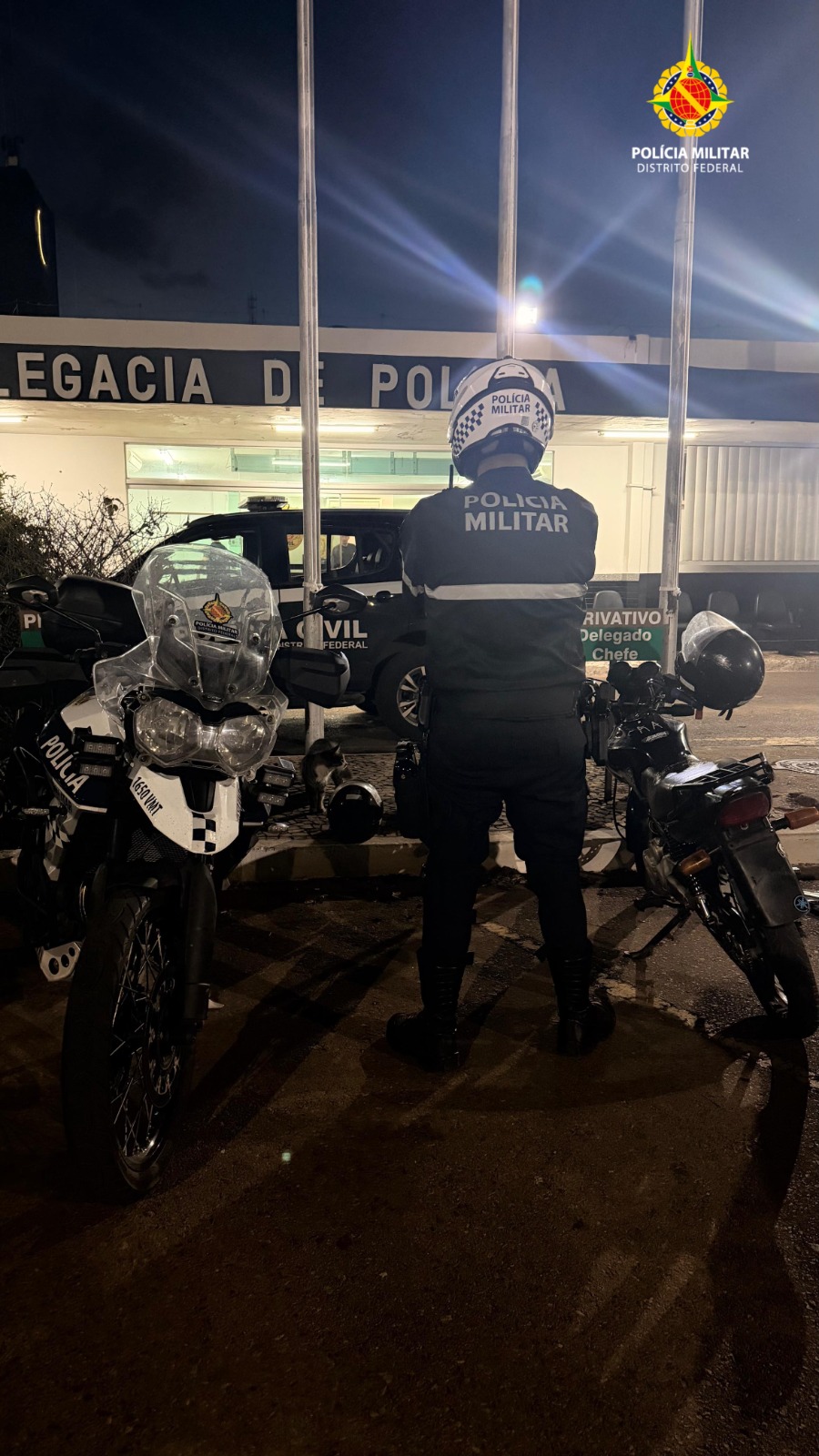Segundo a corporação, os policiais avistaram um homem conduzindo o veículo sem placa de identificação, o que motivou a abordagem para averiguação na DF-180.