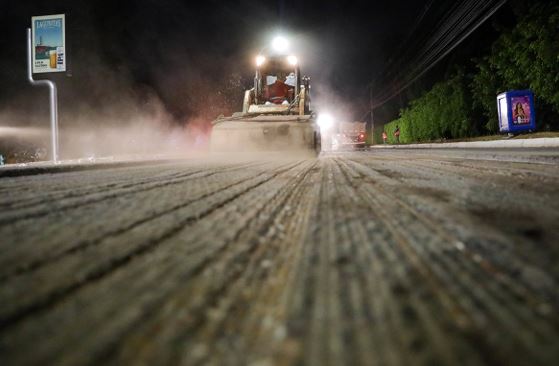 Trabalhos são realizados no período noturno para minimizar impacto no trânsito; ao todo, 300 mil m² do material serão aplicados em vias do DF