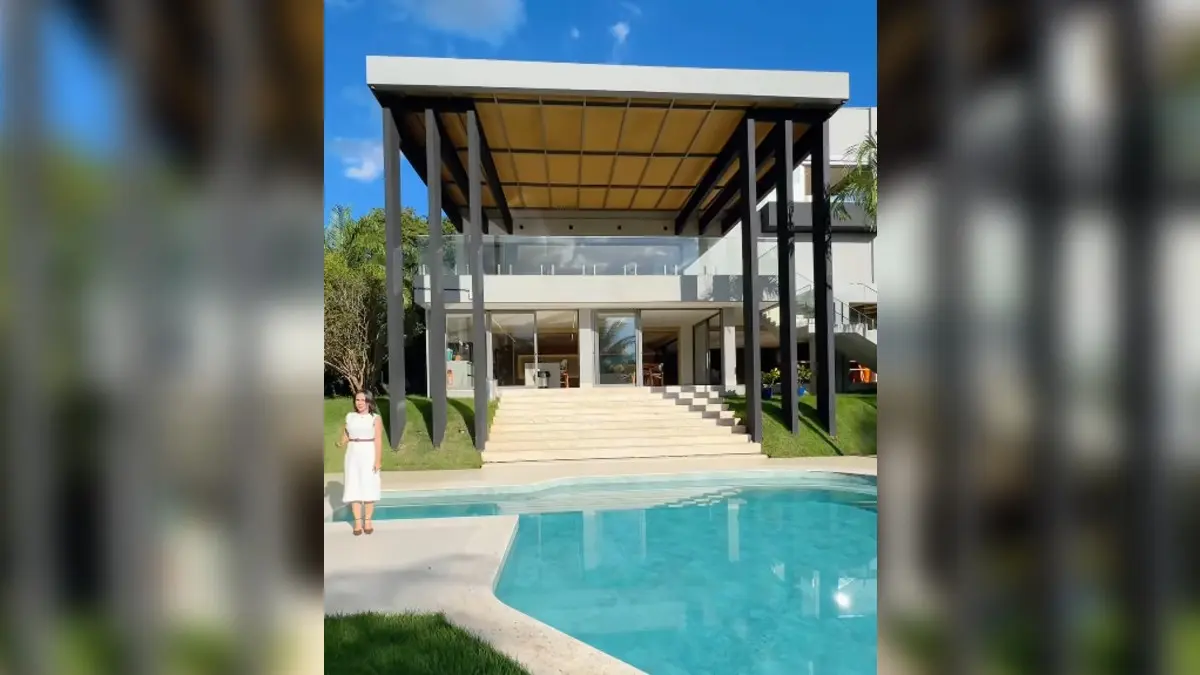 “Olha só ao redor, quanto verde. Mais de 1 milhão de metros quadrados só de área verde preservada”, destacou a corretora. Já o imóvel, um triplex, possui seis suítes, piscina aquecida com telão e já está mobiliado. A mansão, que tem 1.150 metros quadrados e mais 2.100 metros quadrados de terreno, também possui pé-direito duplo, suíte máster com cerca de 150 metros quadrados, sauna e academia. Novo, ele está em fase final de construção, faltando apenas alguns detalhes de mobiliário e marcenaria.