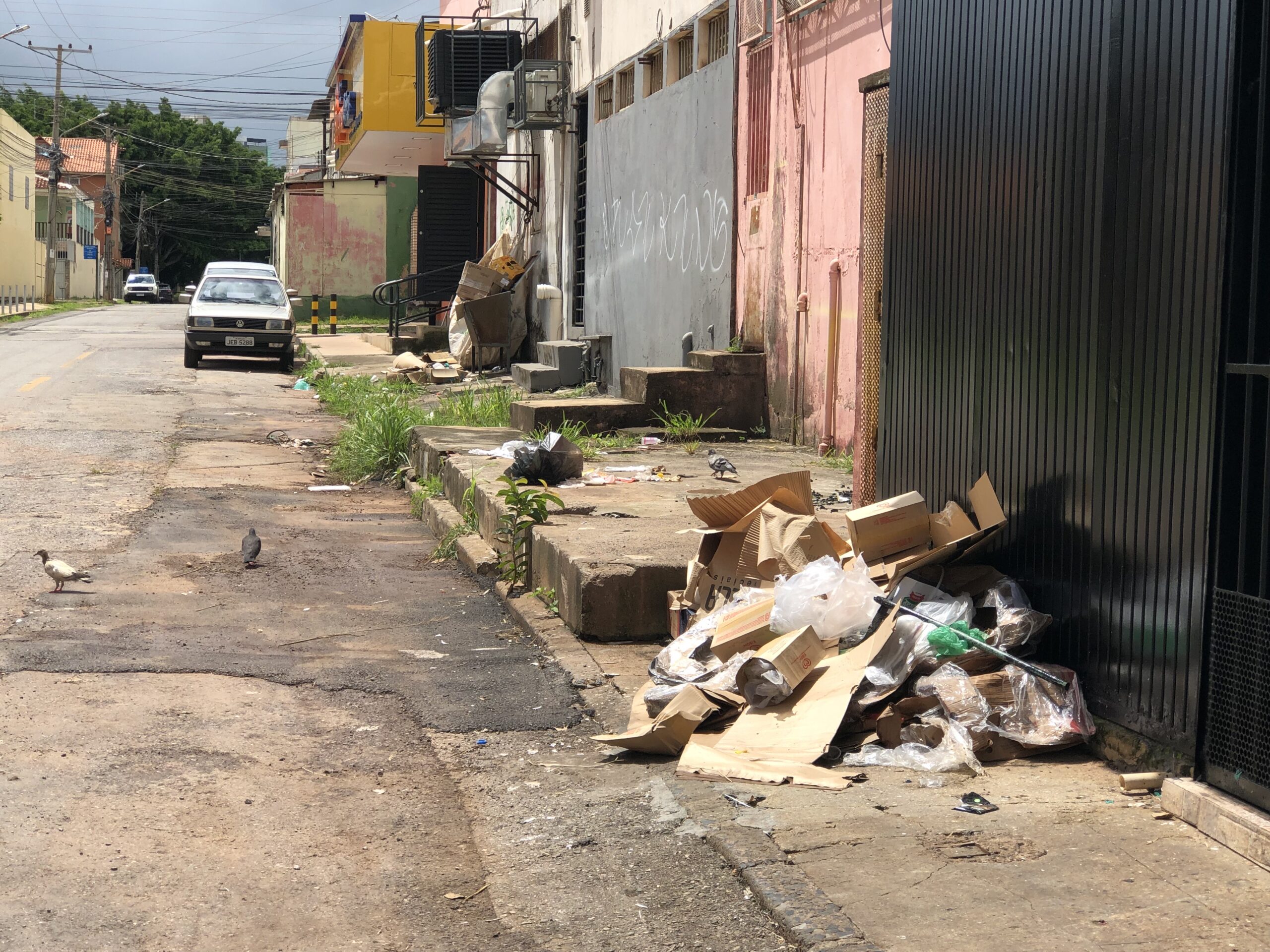 Falta de iluminação pública, descarte irregular de lixo, infestação de pombos, baratas e ratos, além de caminhões estacionados de forma irregular e bloqueando passagens, estão entre os problemas enfrentados diariamente por moradores da quadra 24 do Setor Leste do Gama. A rua é estreita, fica atrás de uma avenida comercial e registra fluxo intenso de veículos para a descarga de mercadorias, fator que contribui para o acúmulo de resíduos no local.