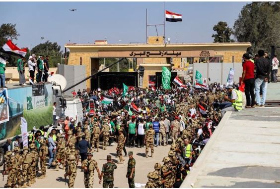 A fronteira começou a ser aberta no sábado, porém apenas para a passagem de caminhões com ajuda humanitária. Mais de 50 caminhões conseguiram levar algumas dessas doações para Gaza. Já foram entregues 475 toneladas de medicamentos, 251 toneladas de alimentos e 78 toneladas de água. Cerca de 200 outros caminhões ainda aguardam perto da fronteira autorização para passar. A abertura é uma decisão de comum acordo e precisa ter a garantia israelense de que os caminhões não serão bombardeados se chegarem até Gaza. Quase 40 aviões pousaram no Egito trazendo ajuda humanitária de diferentes países e organizações. Estes números foram divulgados pelo representante do Egito na coletiva.