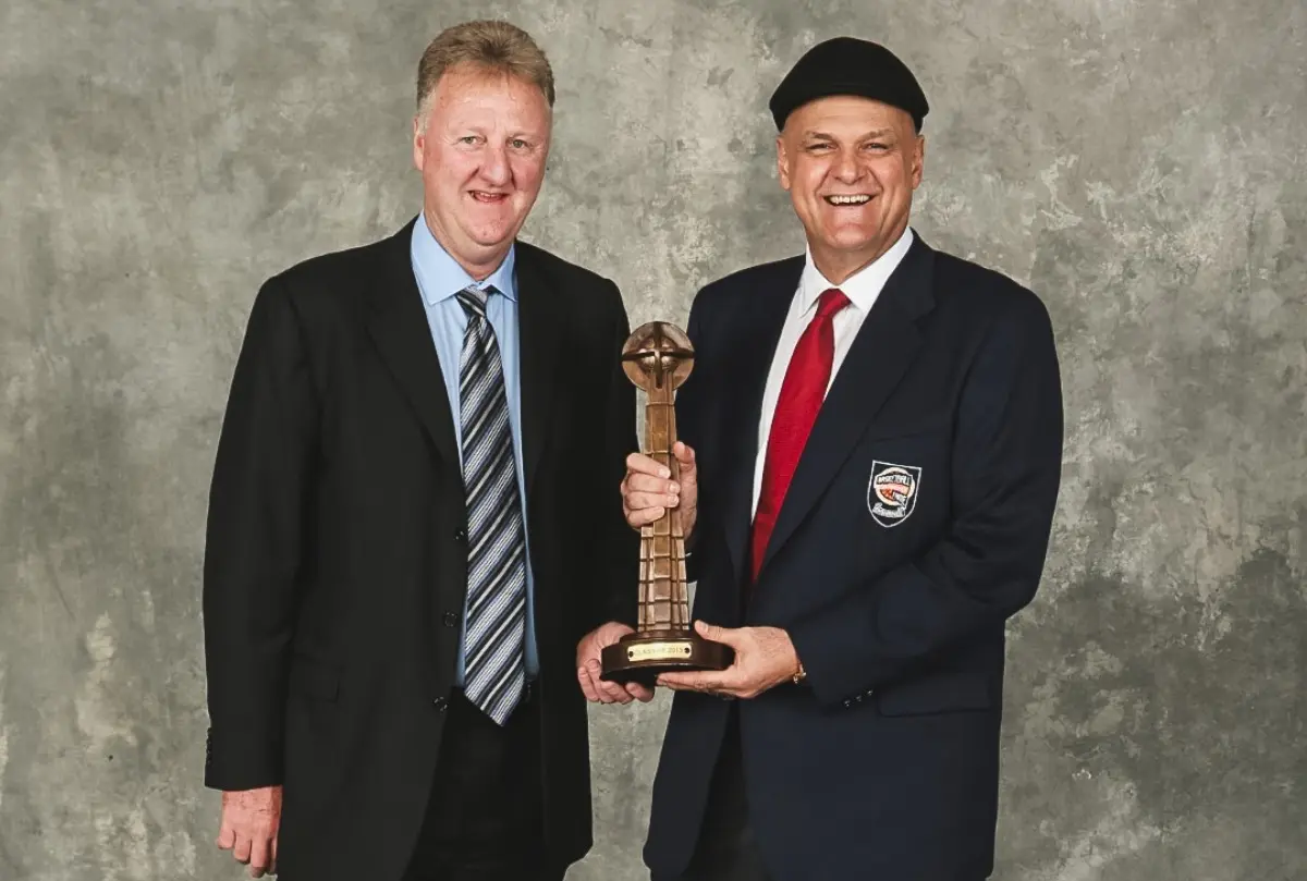 Oscar Schmidt ao lado de Larry Bird, estrela da NBA. Foto: Arquivo Pessoal