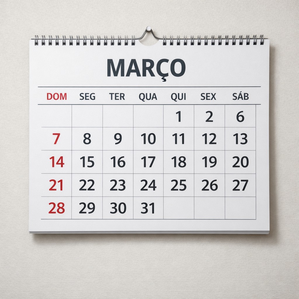 O próximo feriado nacional será no dia 3 de abril, celebrado a Paixão de Cristo. Em março, o cronograma federal não prevê paralisações.