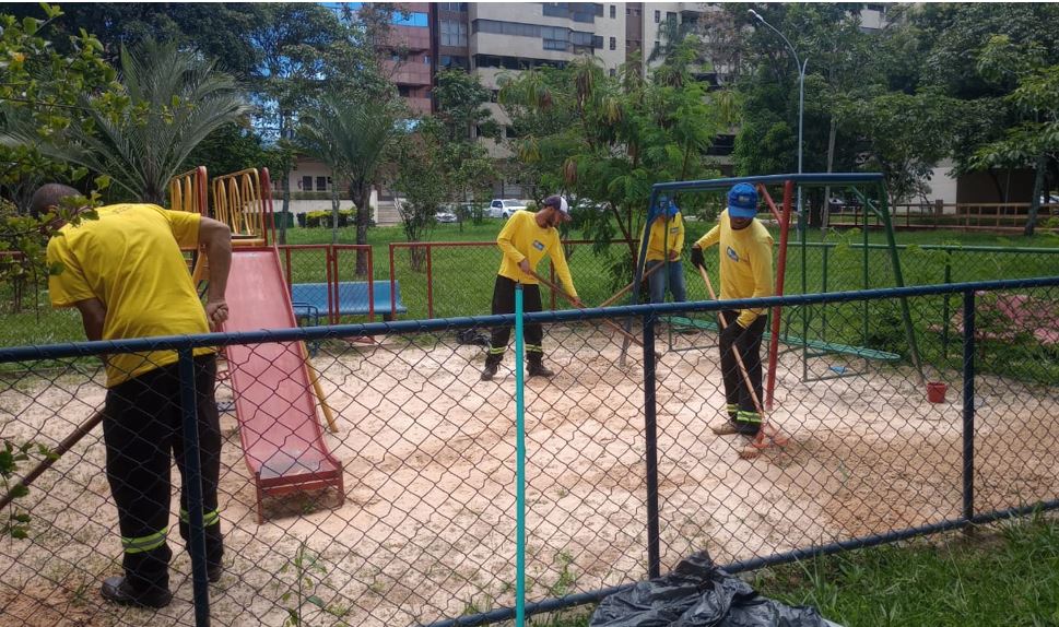 Parquinhos e quadras esportivas do Plano Piloto recebem serviços de limpeza e manutenção.