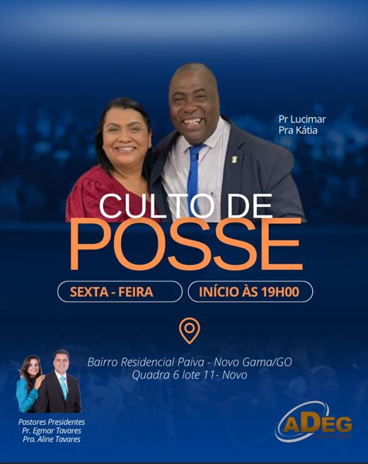 O casal assume a condução da congregação vinculada ao Ministério da ADEG, após um período de oração e confirmação ministerial. A escolha foi recebida pelos membros como resposta à direção divina, reconhecendo no pastor Lucimar e na pastora Kátia um chamado consolidado pelo serviço, pela dedicação e pelo testemunho cristão ao longo dos anos.