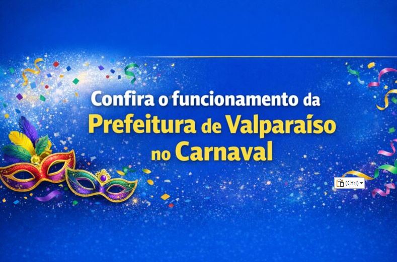 A Prefeitura de Valparaíso de Goiás informa que, conforme o Decreto nº 048, de 11 de fevereiro de 2026, foi decretado ponto facultativo nas repartições públicas municipais durante o período do Carnaval.