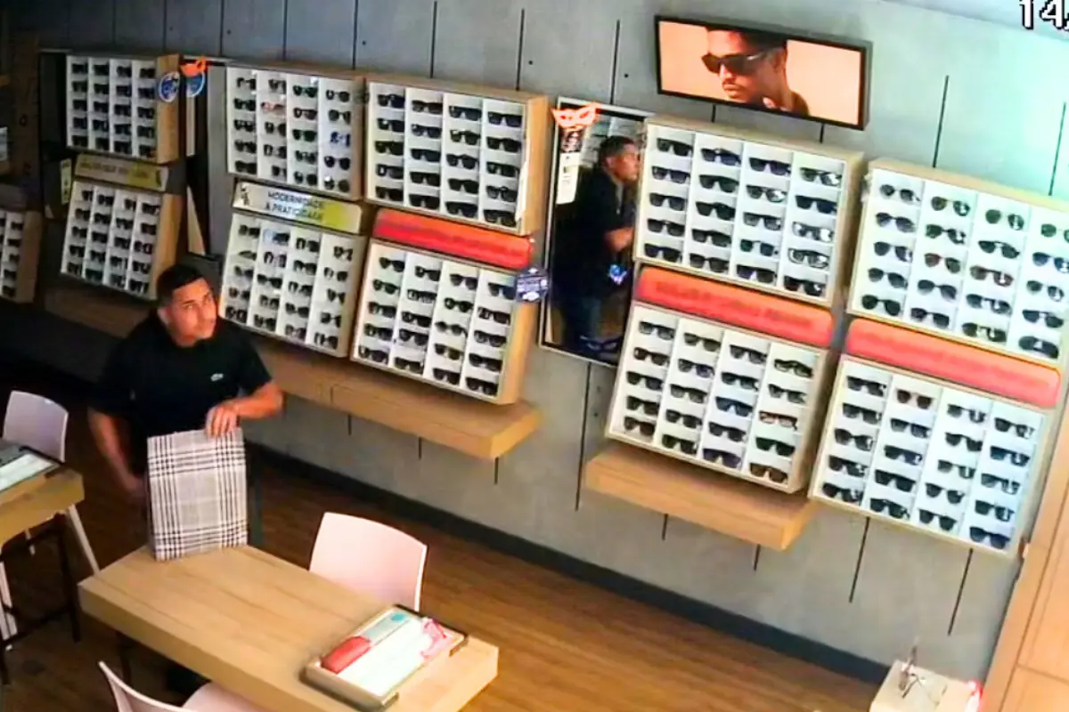 Imagens de câmeras de segurança mostram que, pouco depois das 22h de sábado (14/2), um homem com mochila se abaixa e entra na ótica, que estava quase totalmente fechada. Em seguida, ele teria arrombado uma parede para acessar a joalheria, de onde foram levadas joias e acessórios avaliados em mais de R$ 1 milhão.