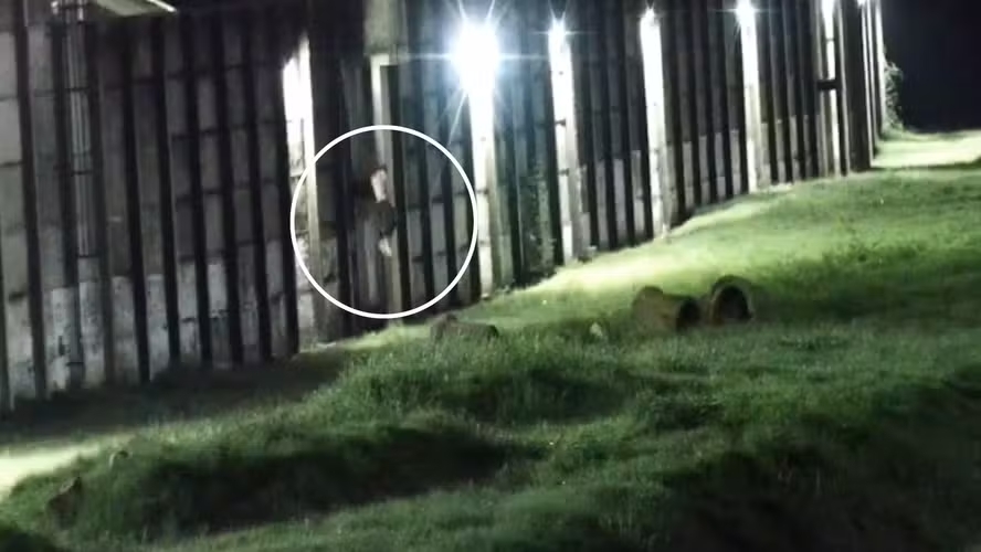 Imagens das câmeras de segurança mostram o momento em que um dos presos pula o muro e acessa uma área de mata da cadeia. Logo depois, o homem é recapturado por uma equipe do Grupamento Tático Móvel.