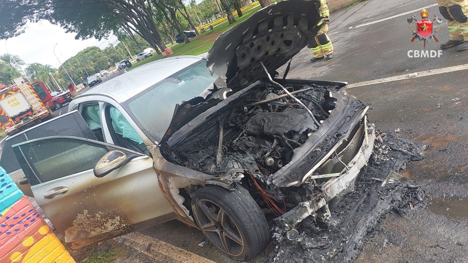 O caso foi registrado na saída do Parque da Cidade em direção à W5 Sul, na altura da 901 Sul. Ao chegarem ao local, os militares encontraram um automóvel Mercedes-Benz, de cor prata, com intensa fumaça saindo da parte frontal. O condutor já estava fora do veículo e em segurança.