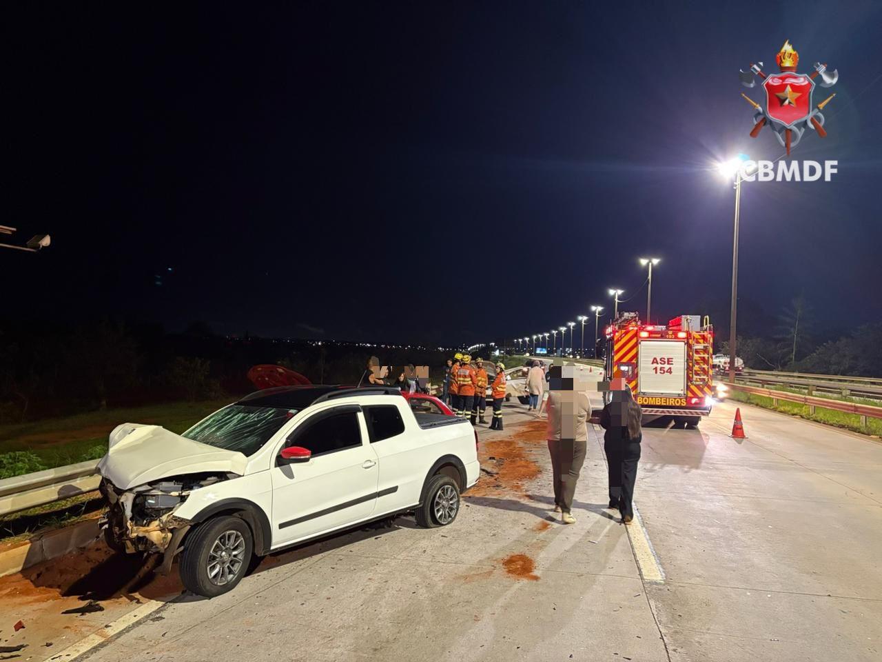 Uma colisão envolvendo três carros mobilizou equipes do Corpo de Bombeiros Militar do Distrito Federal na madrugada desta segunda-feira (13), na via Estrutural, nas proximidades da Cidade do Automóvel.