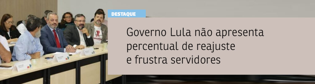 Servidores do Executivo federal esperavam proposta de reajuste do governo Lula em reunião nesta quinta-feira (10/8) Havia expectativa em relação ao tema na terceira reunião da Mesa Nacional de Negociação Permanente com os servidores públicos federais, que ocorre na tarde desta quinta, em Brasília. Segundo o Fórum Nacional das Carreiras Típicas de Estado (Fonacate), o governo informou que ainda não tem um percentual a apresentar, porque isso depende da aprovação do novo marco fiscal. Falta uma votação na Câmara para que a nova regra fiscal, que vai substituir o atual teto de gastos, seja aprovada. O Fonacate informou, ainda, que a ministra da Gestão e da Inovação em Serviços Públicos, Esther Dweck , “está empenhada em buscar espaço para o reajuste, mas só haverá alguma resposta depois da aprovação no Congresso”. “Manifestamos nossa insatisfação com a ausência de proposta, e cobramos celeridade na definição de um percentual de recomposição das perdas acumuladas, que, em todos os casos, ultrapassam 30%”, afirmou o presidente do fórum, Rudinei Marques. Os servidores defendem um reajuste na faixa dos 26% para recompor as perdas inflacionárias acumuladas ao longo dos últimos anos. Eles ainda demandam a equiparação de benefícios (tais como auxílios-alimentação e creche) dos servidores do Executivo com os do Judiciário e Legislativo. A reunião da Mesa de Negociação é fechada à imprensa. Da parte do Ministério da Gestão e da Inovação em Serviços Públicos, devem participar o secretário de Relações de Trabalho, José Lopes Feijó, que conduz os trabalhos, e outros dirigentes da secretaria. A ministra Esther Dweck não participa. A Mesa de Negociação Permanente, instalada pela primeira vez em 2003, reúne representantes do governo e das entidades sindicais. Ela foi reativada em fevereiro deste ano. Reajuste de servidores no primeiro Orçamento de Lula O Orçamento de 2024 será o primeiro elaborado pela atual gestão. Reajustes salariais deverão constar no Projeto de Lei Orçamentária Anual (PLOA) que será encaminhado ao Congresso Nacional até o fim de agosto. A peça orçamentária de 2023 foi feita ainda na gestão Jair Bolsonaro (PL). Após as eleições de outubro, o presidente eleito conseguiu aprovar a PEC da Transição para garantir recursos ao pagamento de despesas. Foi concedido o valor de R$ 145 bilhões do Orçamento de 2023, fora do teto de gastos. Em abril deste ano, o Congresso autorizou recursos adicionais no Orçamento para reajuste de servidores do Executivo, que ocorre a partir de 1º de maio e foi fixado em 9%. Lula sanciona reajuste de 9% para servidores federais nesta 6ª (28/4) De acordo com o governo, mais de 1 milhão de servidores são beneficiados. O impacto nas contas públicas é de R$ 11,2 bilhões. O governo Luiz Inácio Lula da Silva (PT) frustrou servidores do Executivo federal ao não apresentar uma proposta de reposição salarial nesta quinta-feira (10/8).