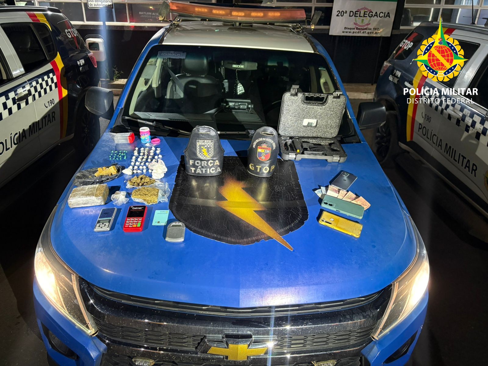 A Polícia Militar do Distrito Federal (PMDF) atuou na noite deste sábado (21), por volta das 19h30, em uma ocorrência de tráfico de drogas e posse ilegal de munição de uso restrito na Quadra 13, Conjunto F, Setor Sul, nas proximidades da praça de esportes, no Gama.