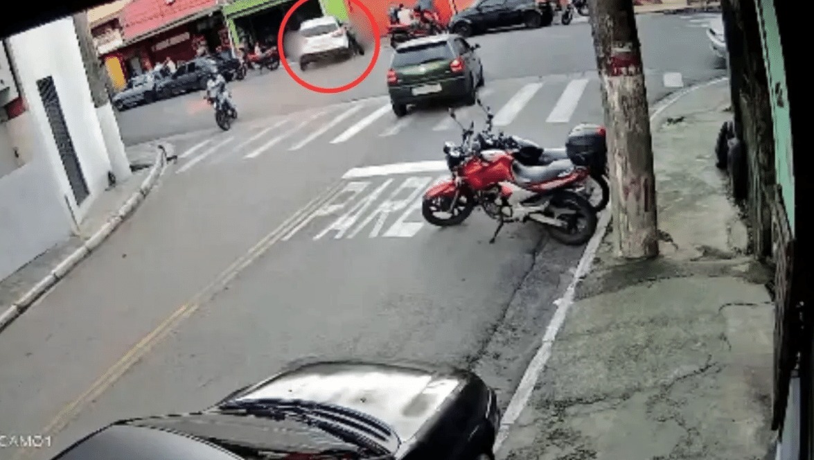 O atropelamento ocorreu cerca de 15 segundos após o homem sair com o carro de casa. O barulho da colisão foi captado pela câmera.